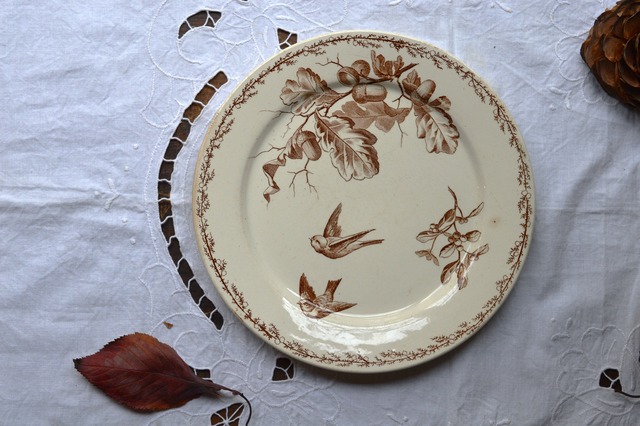 CREIL&MONTEREAU SYLVA マロン色 スズメとどんぐりの平皿 kt3285