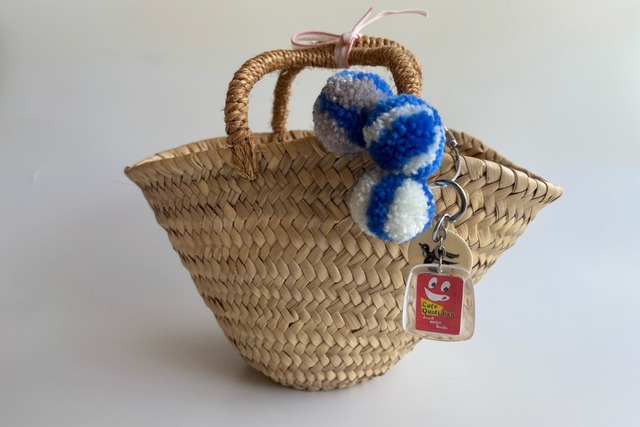 前回ご好評いただいたヴィンテージのキーホルダーを付けたバッグチャームを再制作いたしました。 今回のキーホルダーは1960年頃から1980年にかけてヨーロッパを中心とした企業のノベルティグッズとして作られたものを集めました。 企業や商品名などと共にモチーフが樹脂の中に封じ込められていて、レトロ感とおもちゃ感がなんとも言えない可愛らしさです。 当店ではキーホルダーの他にヴィンテージのボーンチップにツバメを描き、アクセントにストライプのぼんぼんを付けました。(別名ウニぼんぼんと呼んでいます) ワイヤーはねじ式で開閉します。カラビナとは違い輪の大きさにゆとりがあるので、場所を選ばずに付けられると思います。※ワイヤーの直線に戻る力が強いので、外す時は両端をしっかり持ってねじを外してください。 お好きなチャームを付け加えてお気に入りのバッグチャームに育てて楽しんでいただくこともできます。 ヴィンテージ好きな方にちょっと大人のバッグチャームはいかがでしょうか。