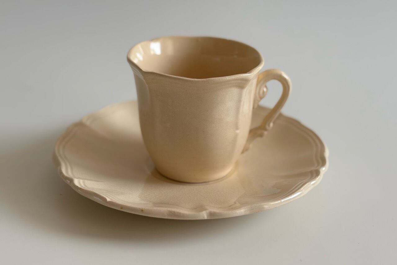 Digoin&Sarreguemines 花リム ivory カップ&ソーサー