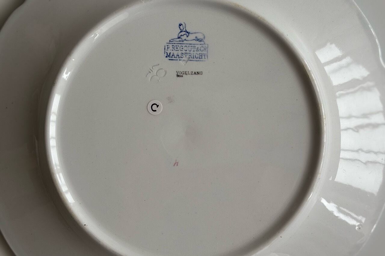 本品の製造年は正確にはわかりません。ただ、このデザイン(vogelzang)は19世紀の後半(1883-1891年)からある絵柄のものです。Petrus Regout の本刻印は1879年から使用されているものですが、色々調べましたがいつまで使われていたものなのかがはっきりわかりませんでした。