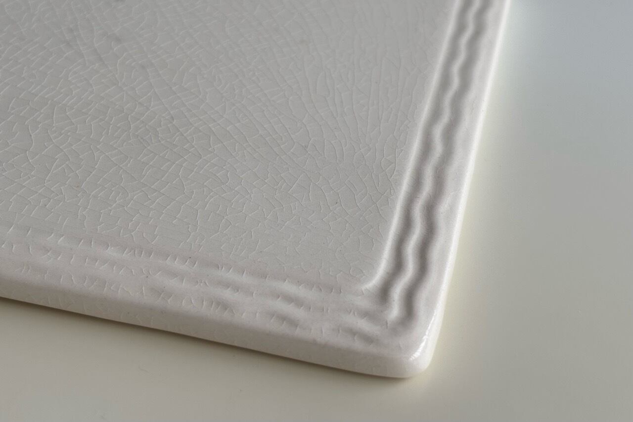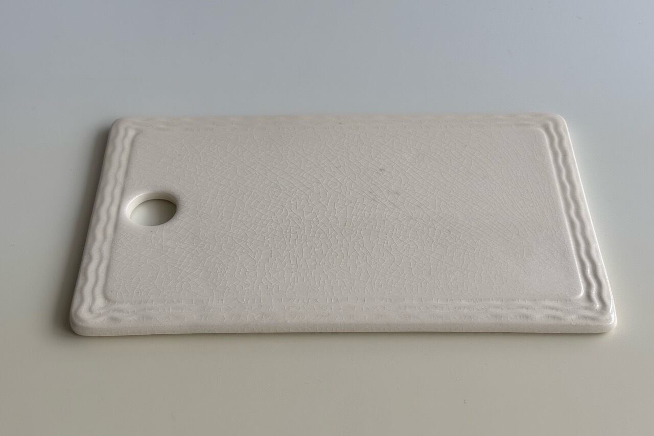 温かみのある柔らかいアイボリーカラーで、チーズやパン、ケーキ、フルーツなどをカットするのに使われます。またオードブルなどを直接並べるお皿としてもお使いいただけます。