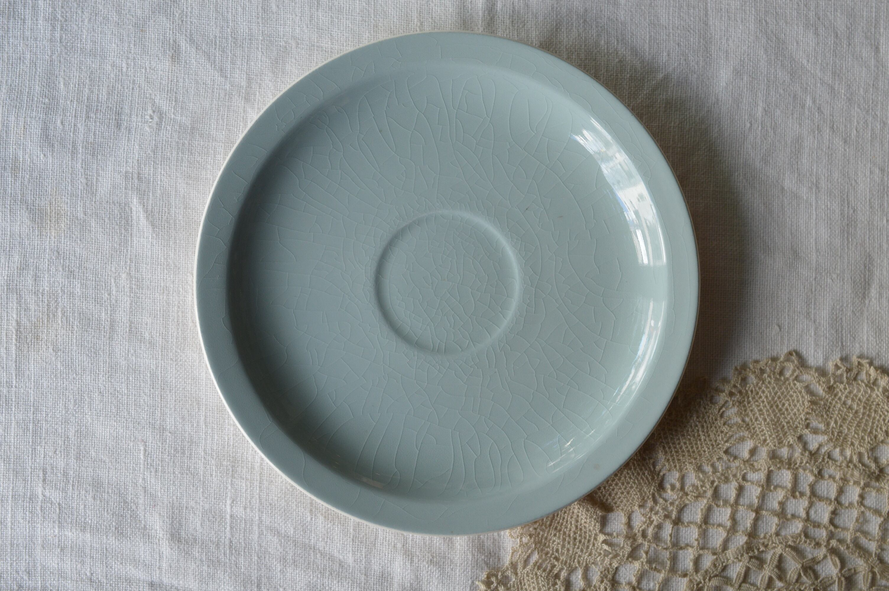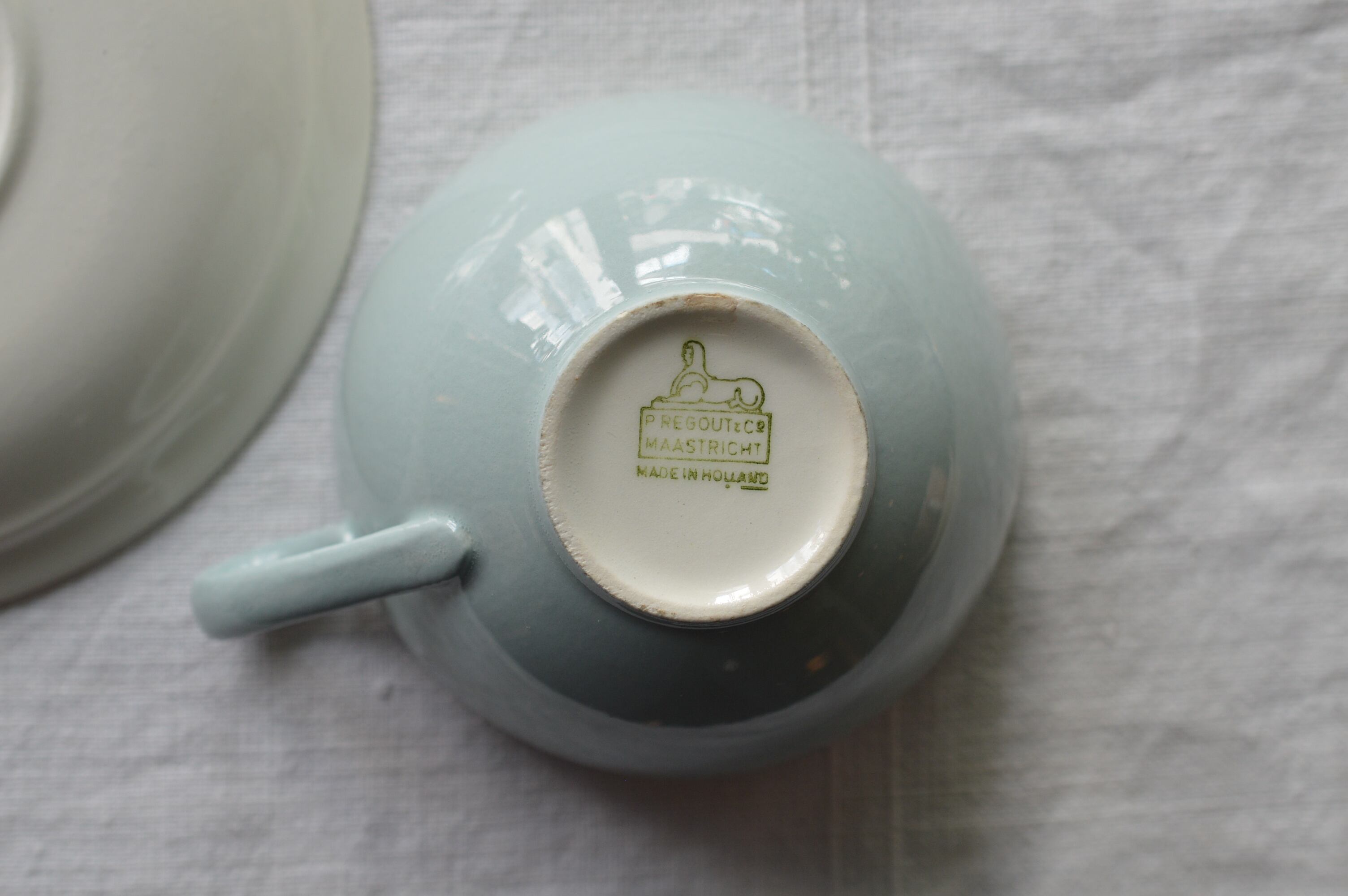 パステルブルーのペトリュス・レゴー(Petrus Regout) の方のソーサーには表面に無数の貫入があり模様のようにも見えます。刻印は1883年から使用されているものです。