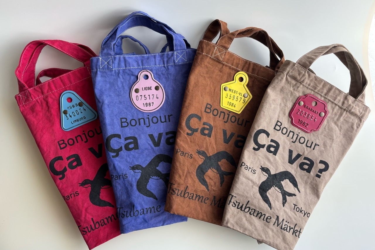 アクセントには「ベルギーのヴィンテージ自転車プレート(実際に使われていたもの)」が付いています。今回よりプレートデザインとカラーバリエーションを追加しました。染め色に合わせてプレートの色やデザインを決めています(※各プレートはベルギーの州名、年代、登録番号が入っております。それぞれ内容は異なりますがお客様がお選びいただくことはできません)