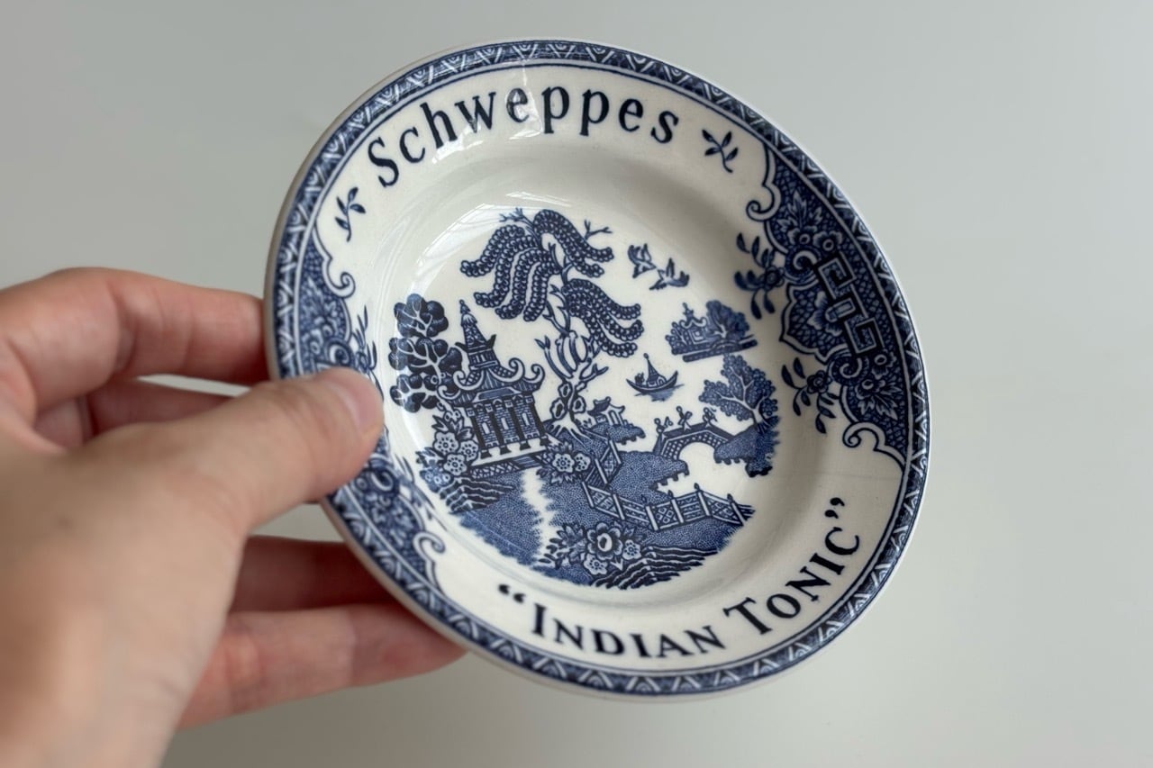 以前にもご紹介しましたSchweppes社のWillow patternの小さなプレート。前回はグリーンでしたが、今回は王道のブルーです。