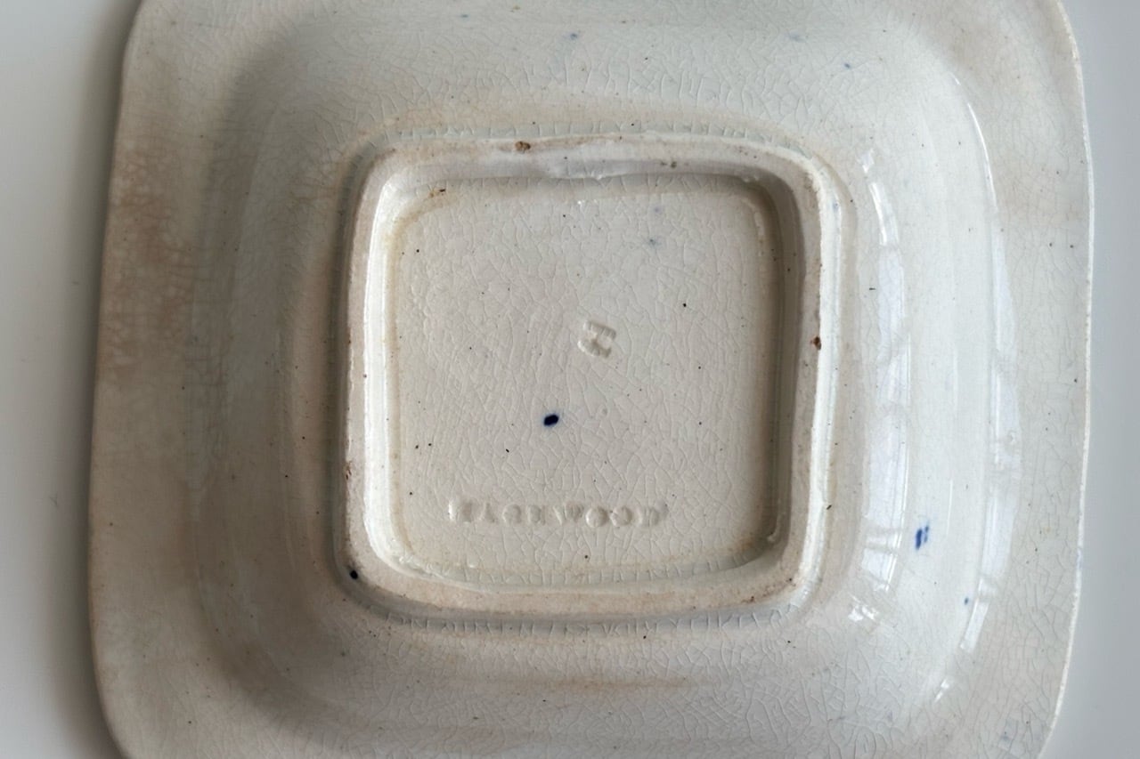 こちらのマークは1807年リバプール近くのHanleyにて創業のWilliam Hackwoodの1800年中期に使用していたマークです。転写技術に優れた会社で細かな描写の陶器が作られました。