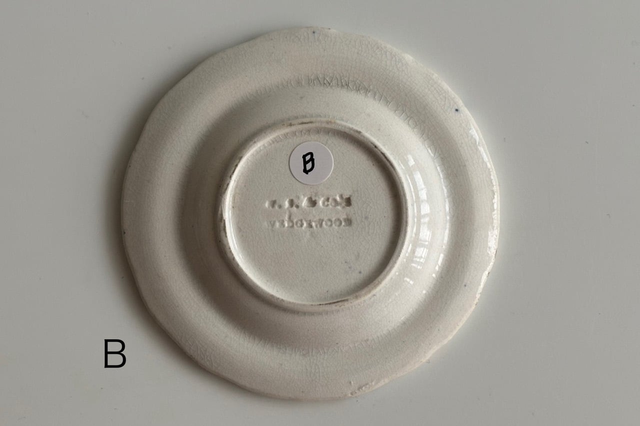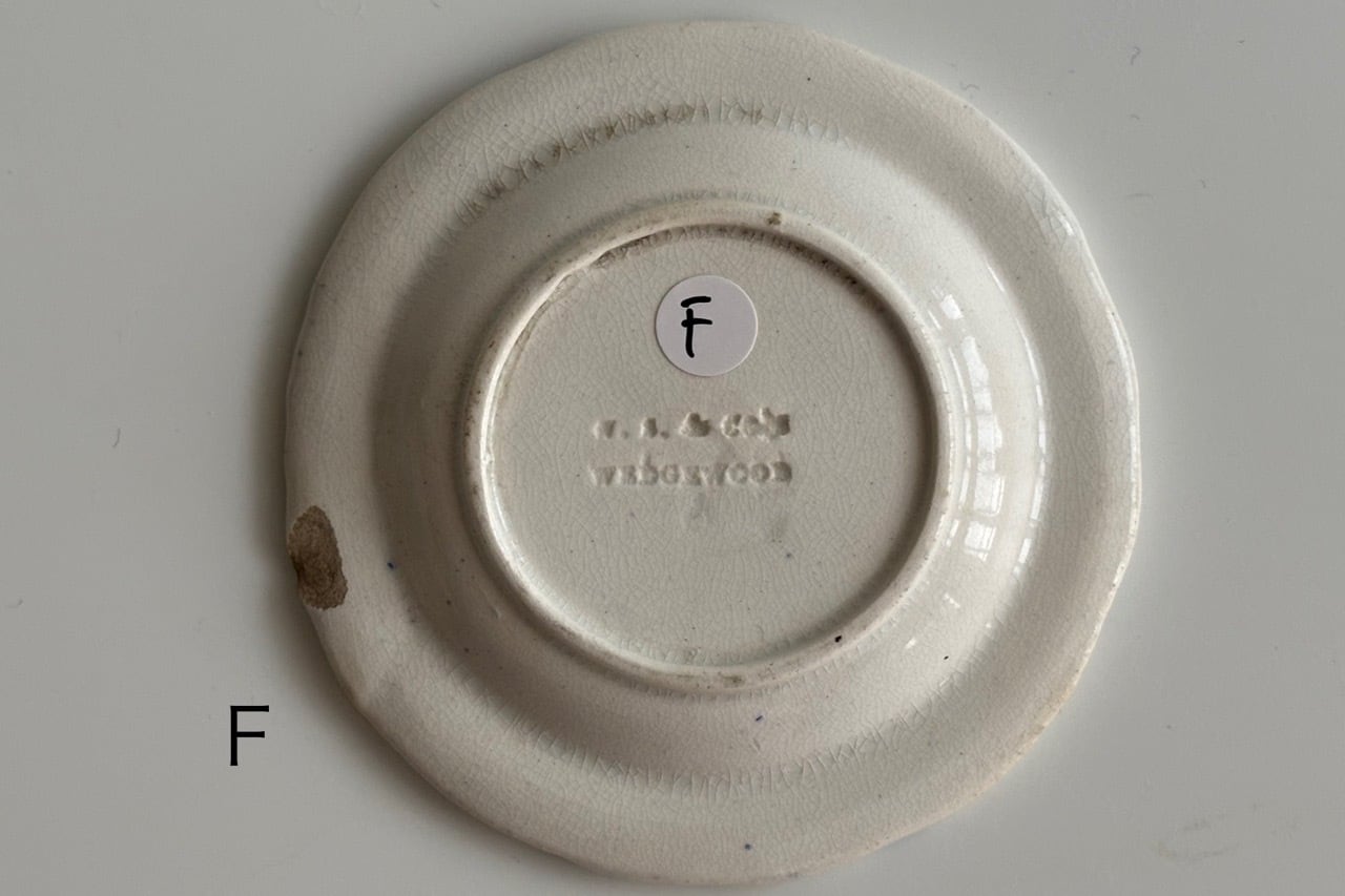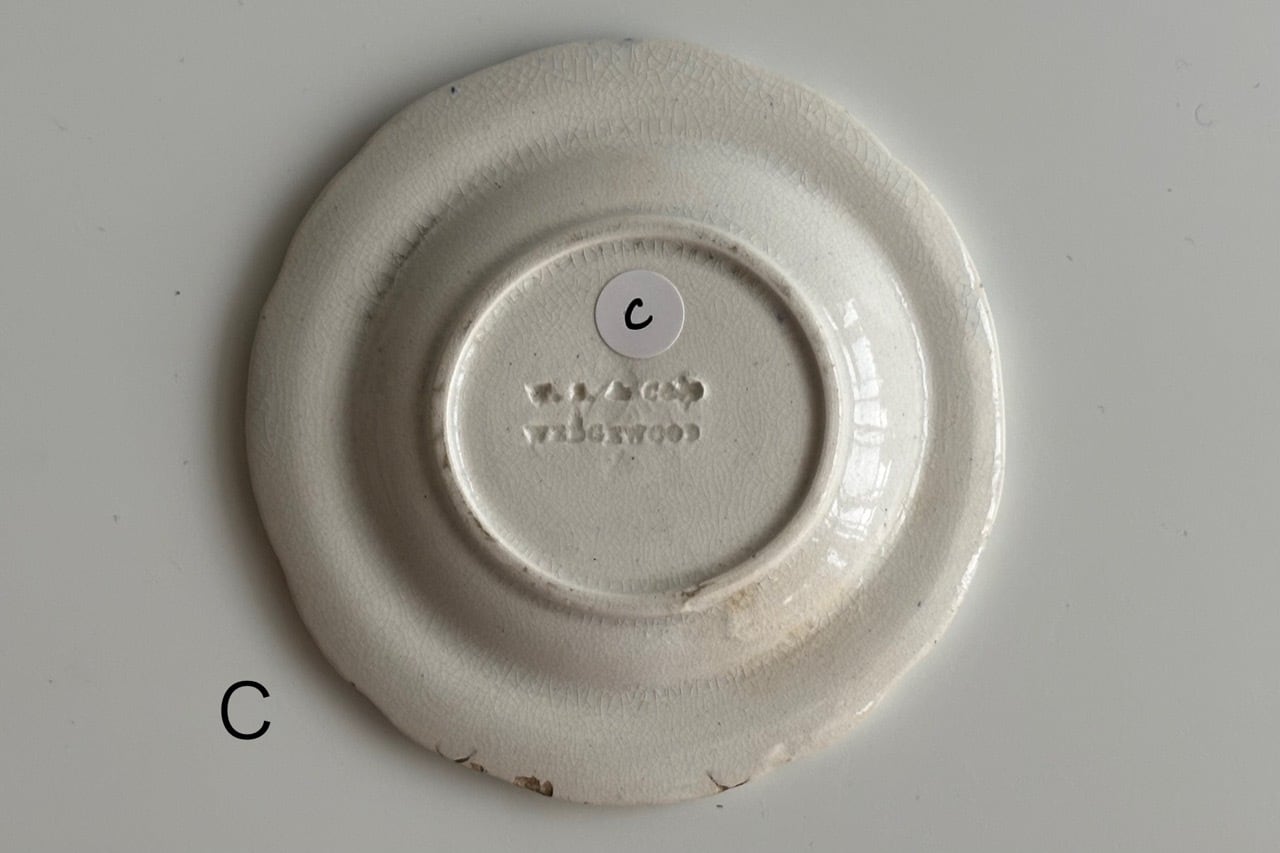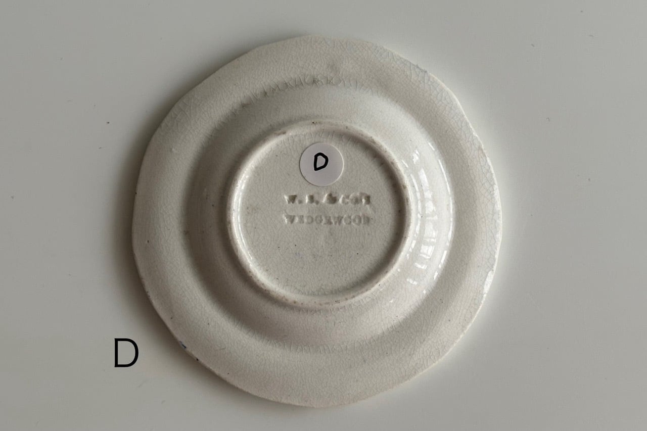 法廷闘争に敗れたスミスはその後も生産を続け、「WEDGWOOD」と刻印された製品には、差し止め命令を回避するために「E」を付け加えた「WEDGEWOOD」という刻印を使用しました。本品はそれになります。