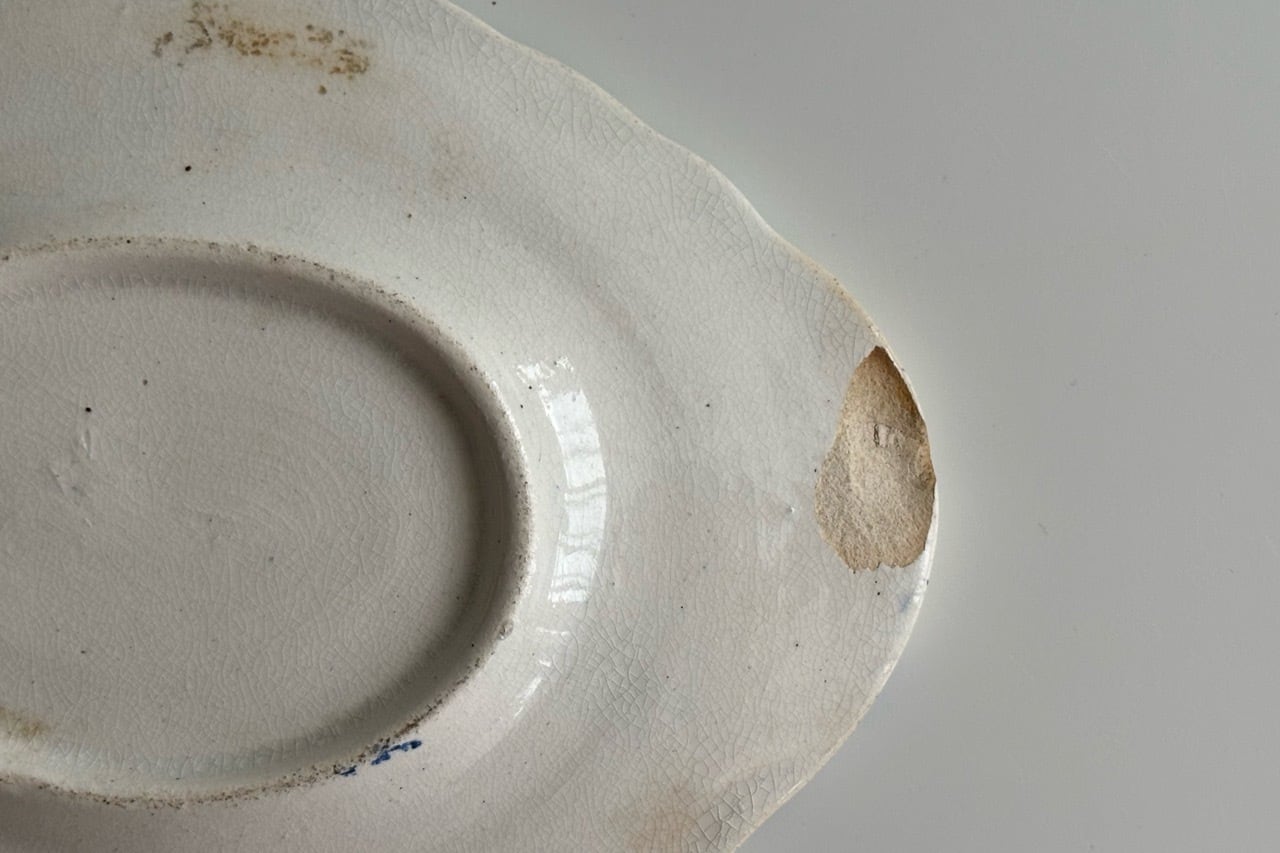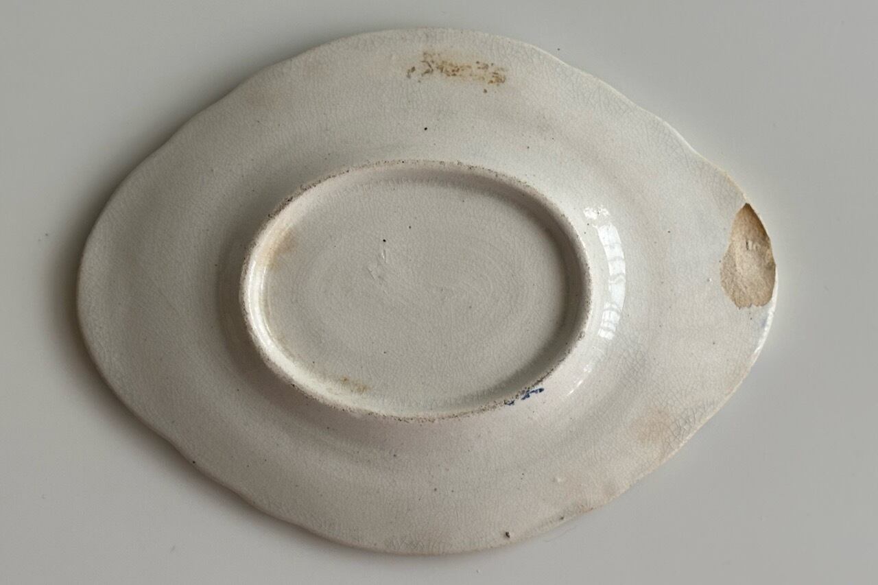 法廷闘争に敗れたスミスはその後も生産を続け、「WEDGWOOD」と刻印された製品には、差し止め命令を回避するために「E」を付け加えた「WEDGEWOOD」という刻印を使用しました。本品はそれになり、大変希少な一品です。