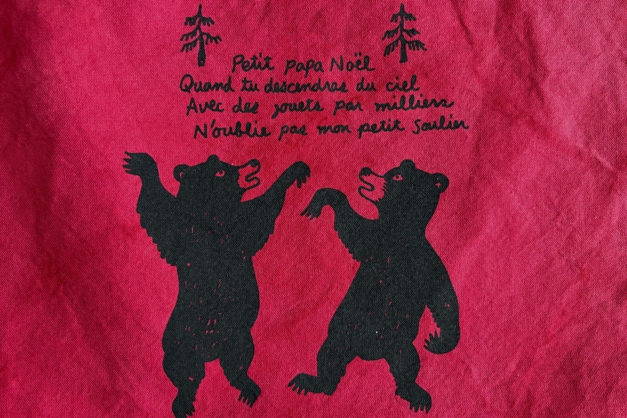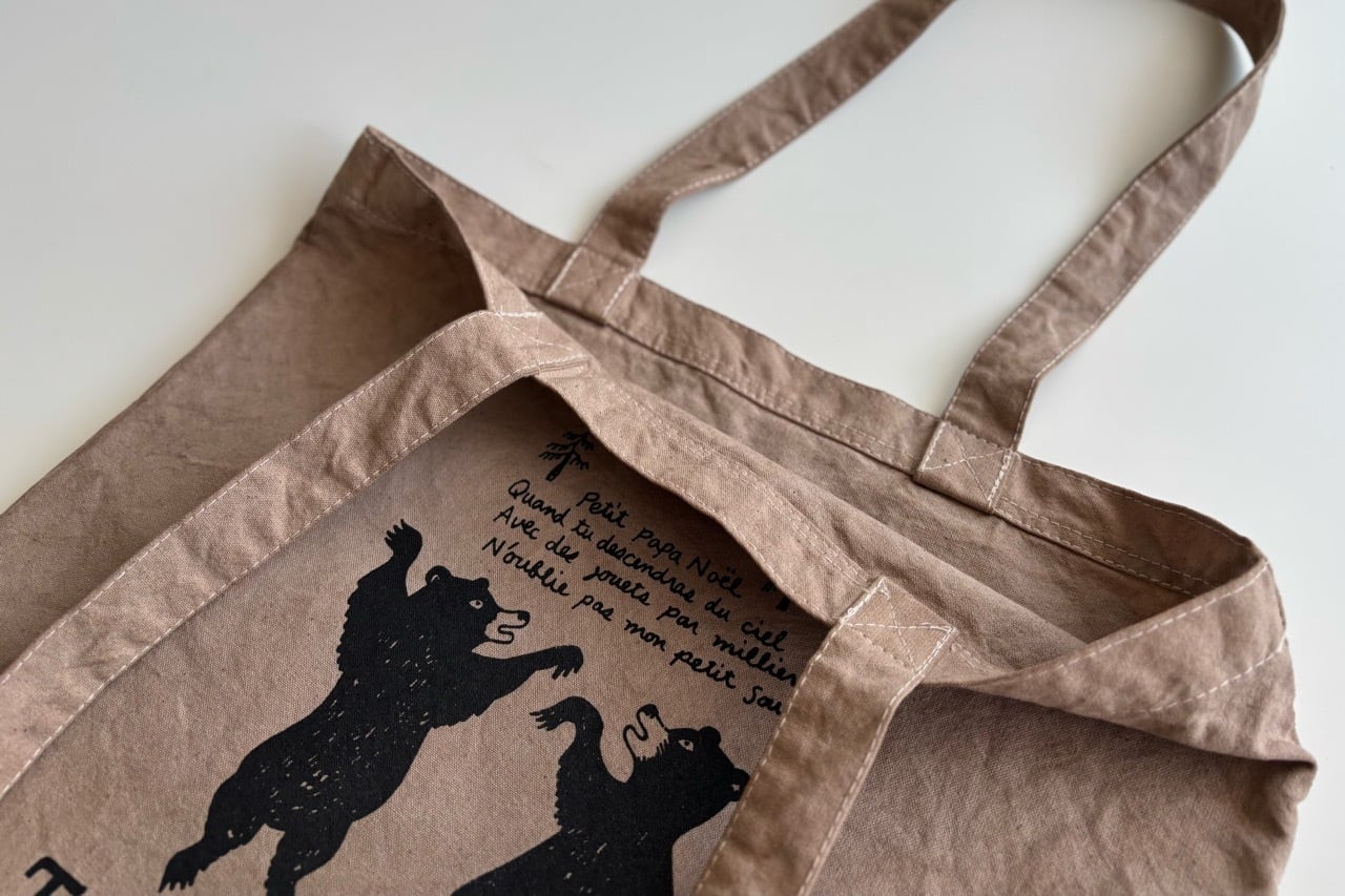以前クリスマスに合わせて制作したプチパパノエルのトートバッグを復刻版として再制作しました。