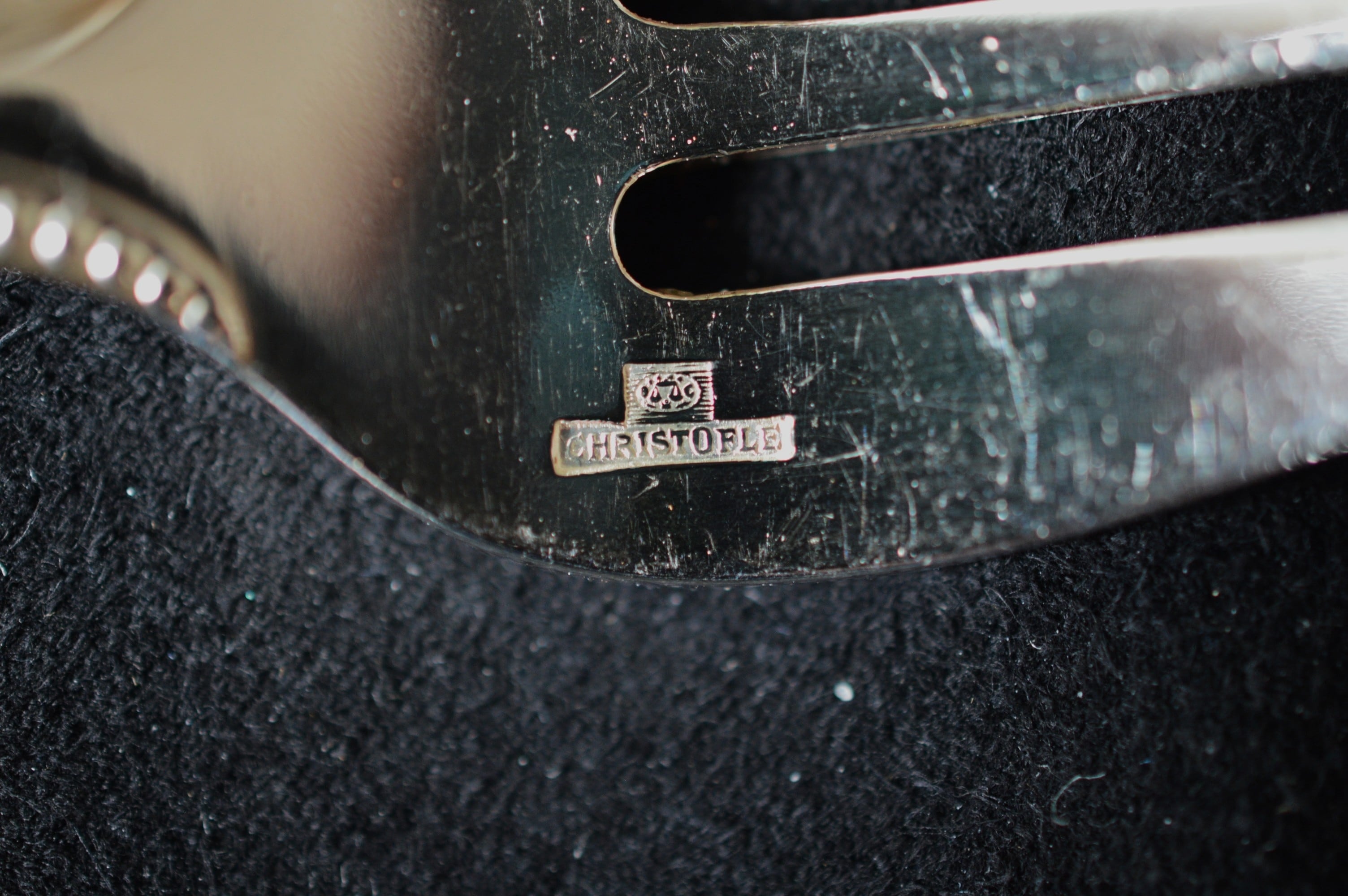 表面に、CHRISTOFLE、天秤にOC + FRANCE、チェスナイトにOC の刻印があります。