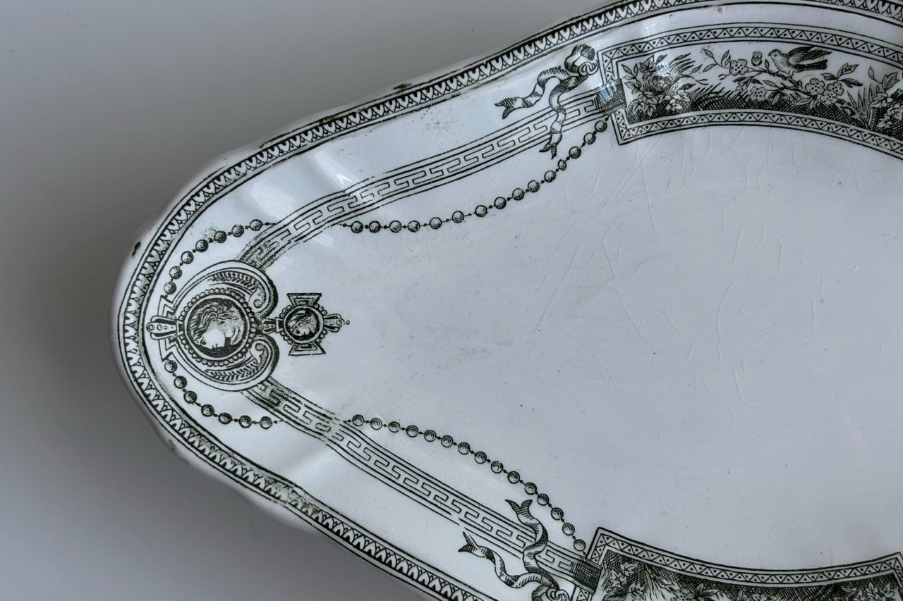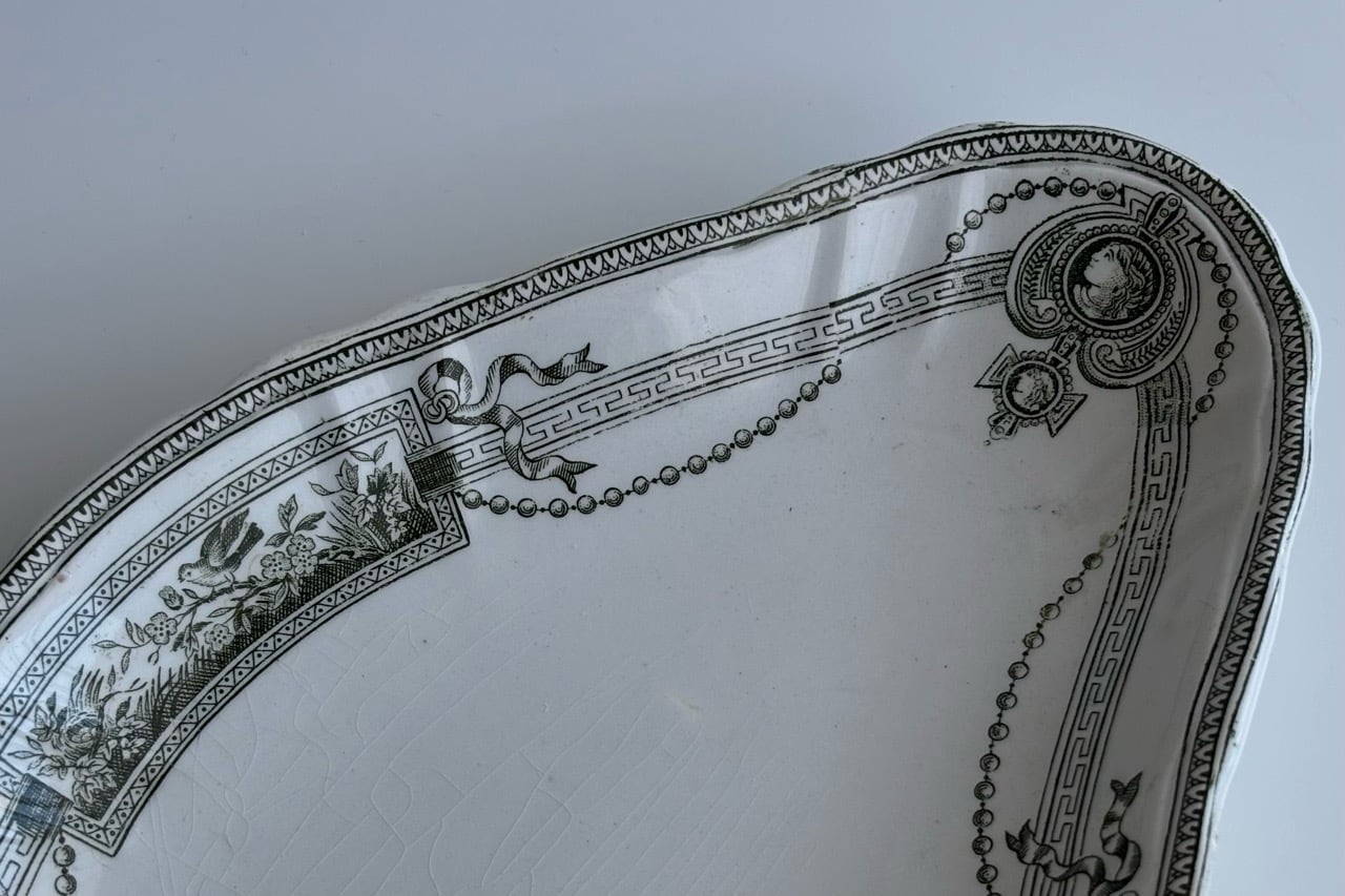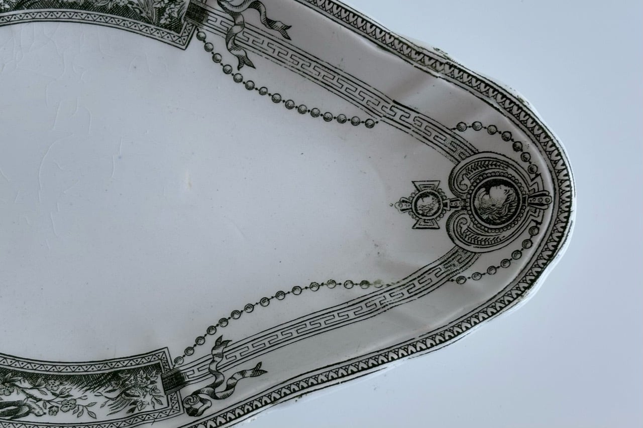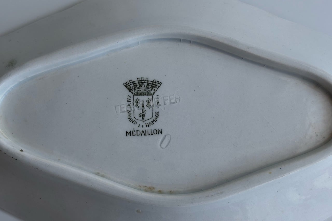 サン・タマンとアマージュは元々別の窯でしたが、1896年に合併し、サンタマン・オルシ・アマージュとして一体のブランド(窯元)として陶磁器を製造していました。そのため、アンティーク陶磁器では "Saint Amand & Hamage"1896年~ や"St Amand-Orchies-Hamage" 1923年~といった刻印が見られます。