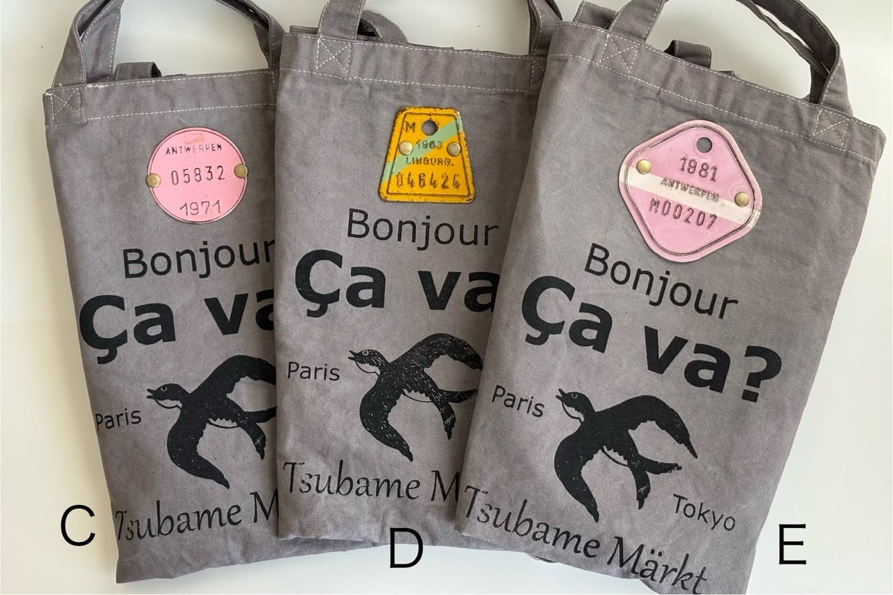 デザインは当店の定番 “空飛ぶツバメ” & “Bonjour, ça va?” になります。