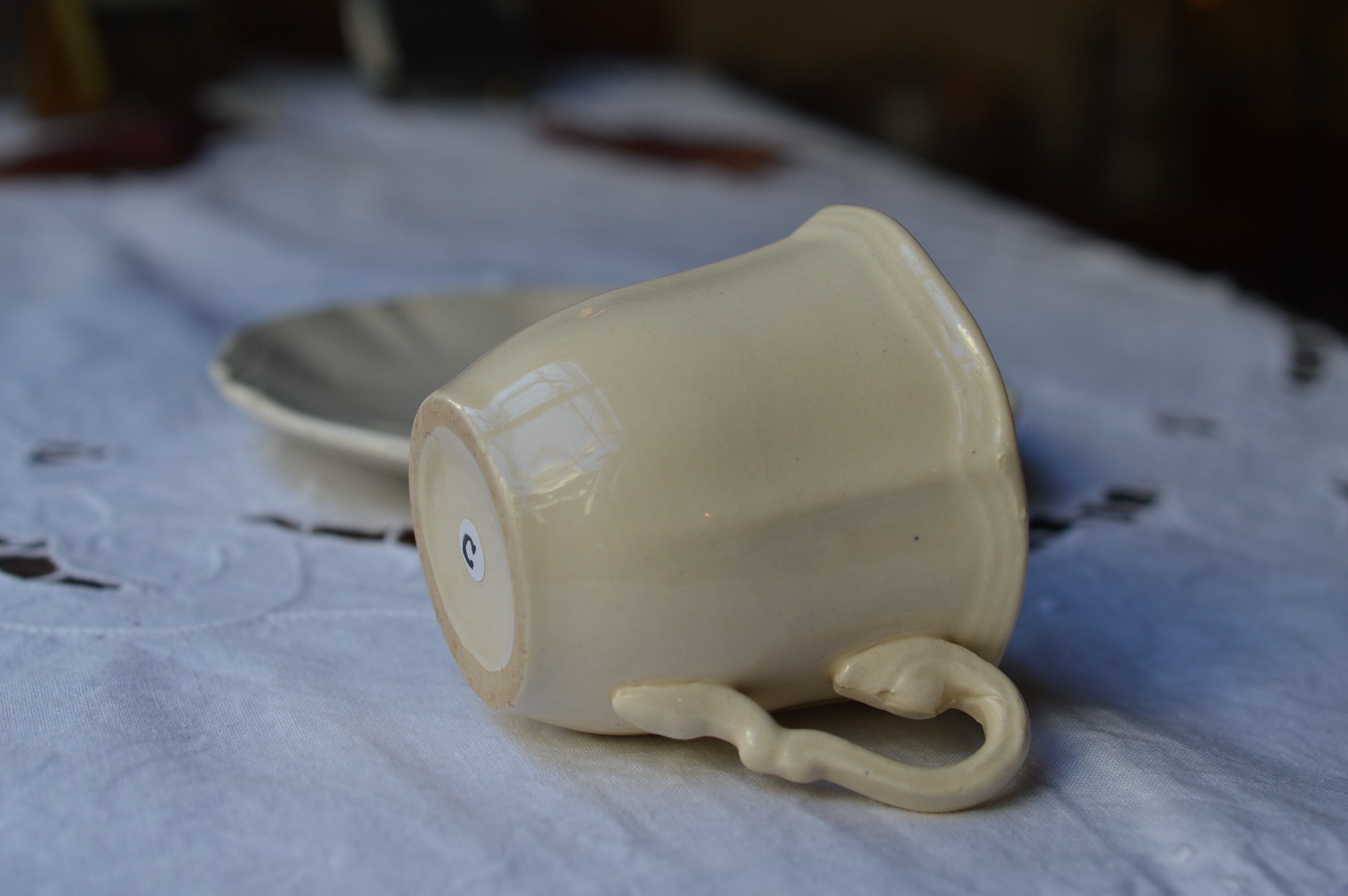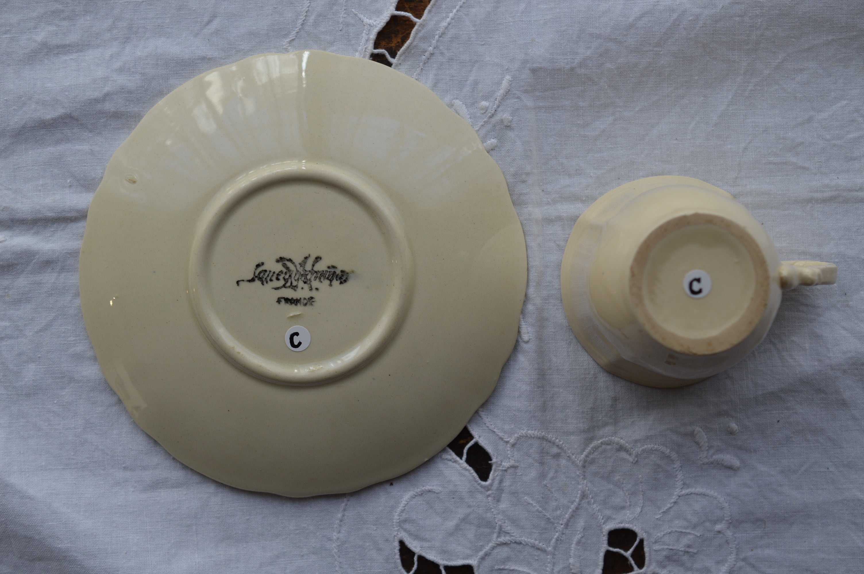 Digoin&Sarreguemines 象牙色 花リムカップ&ソーサーC kt3283