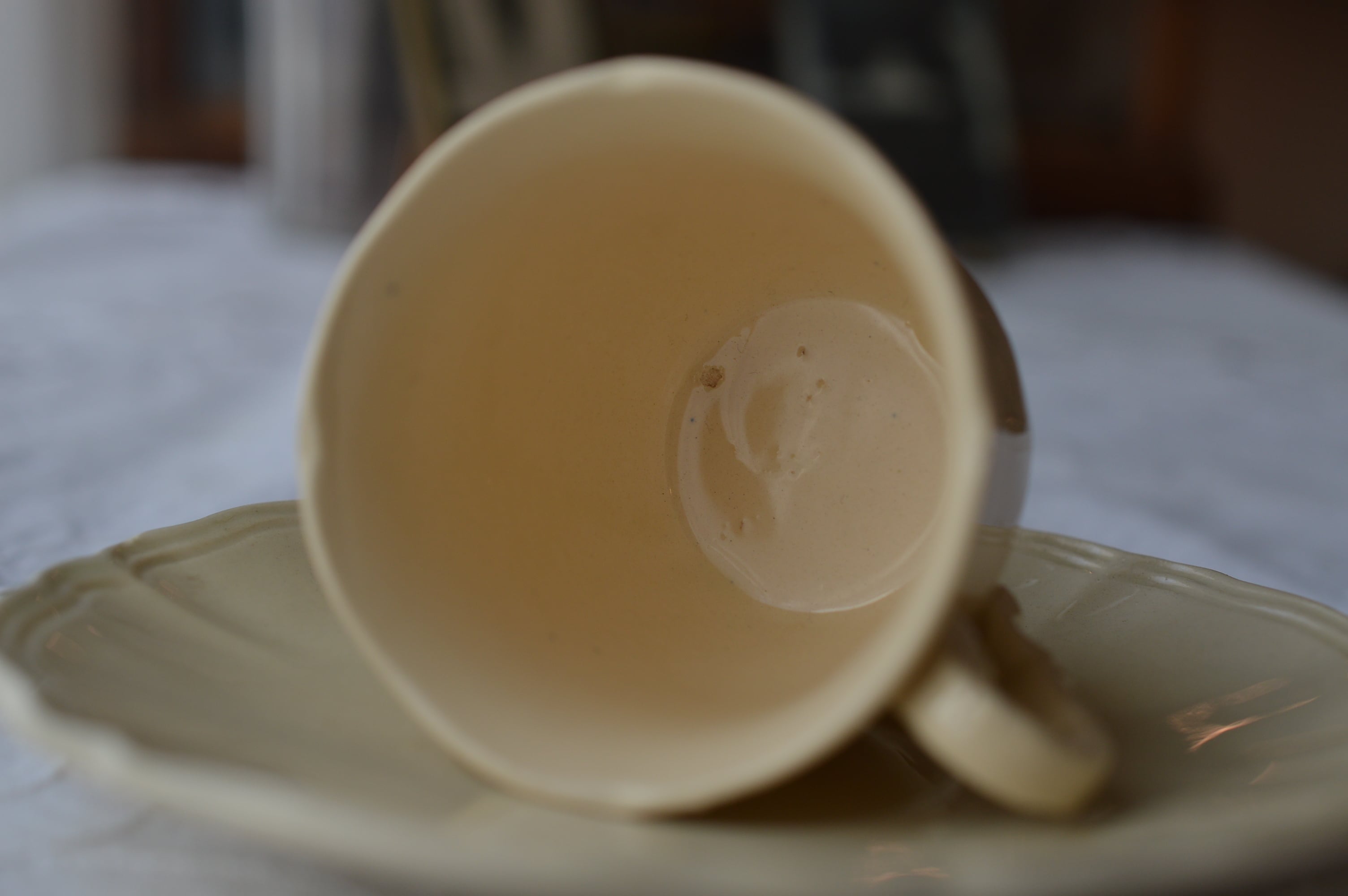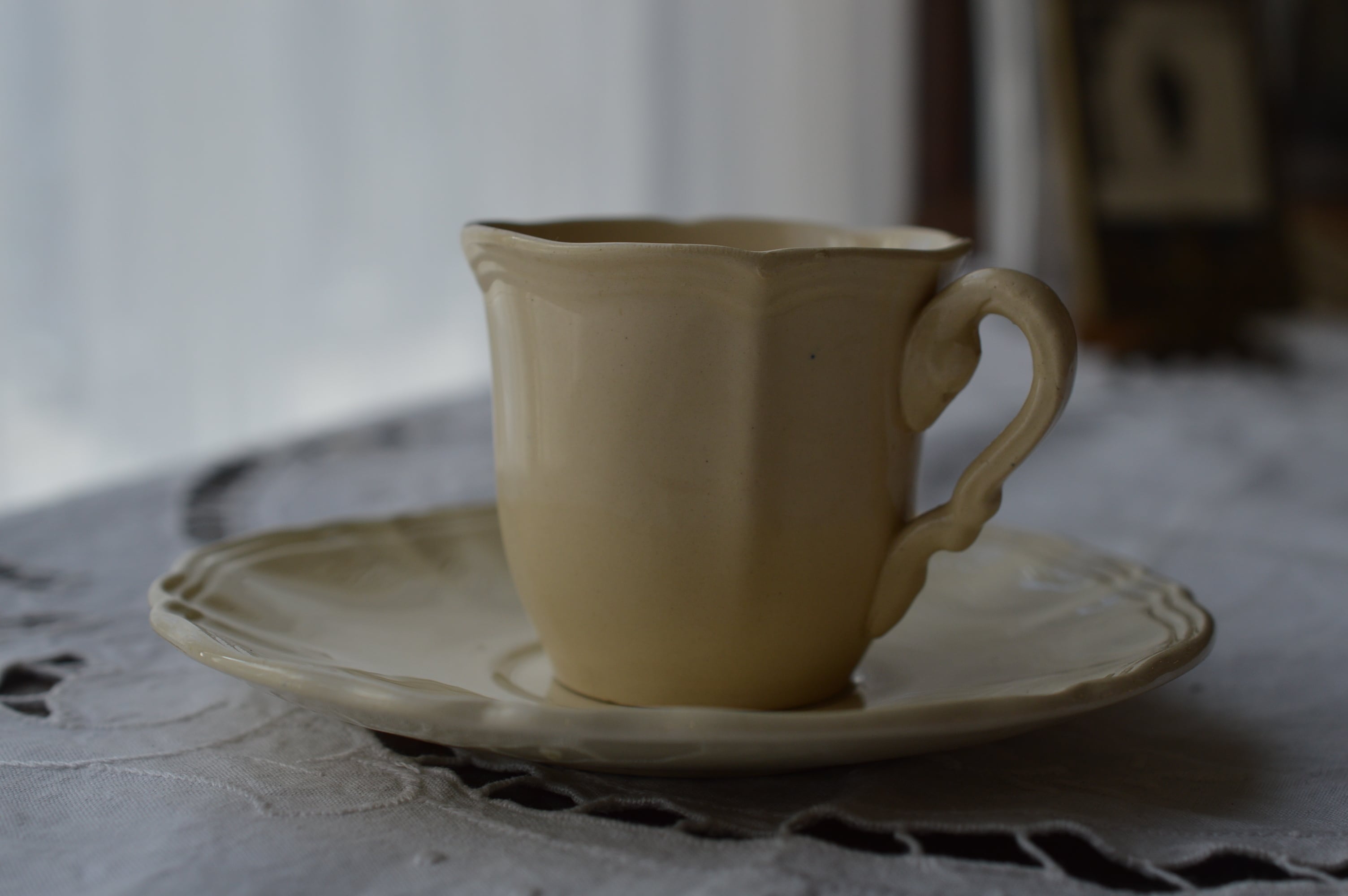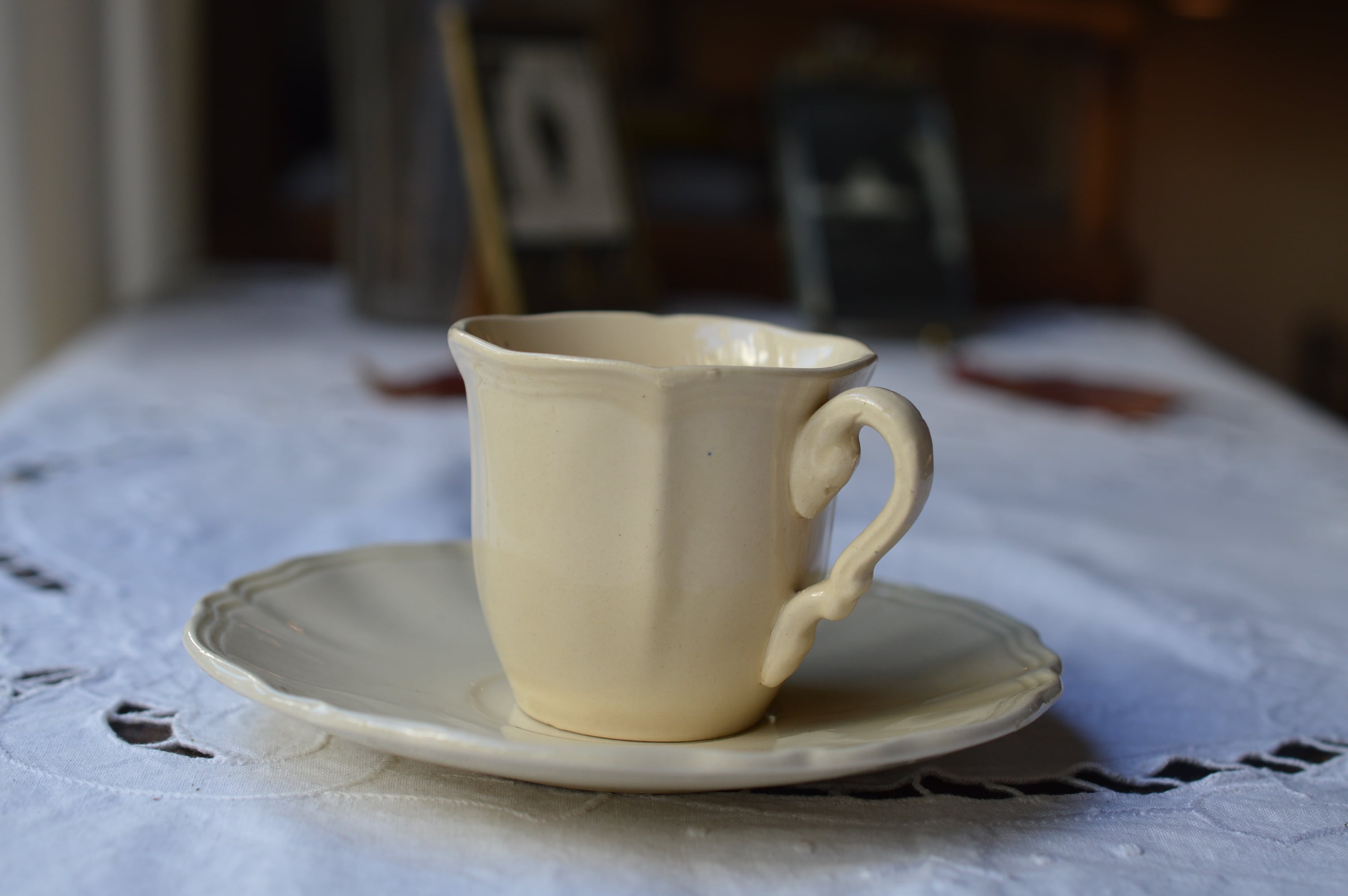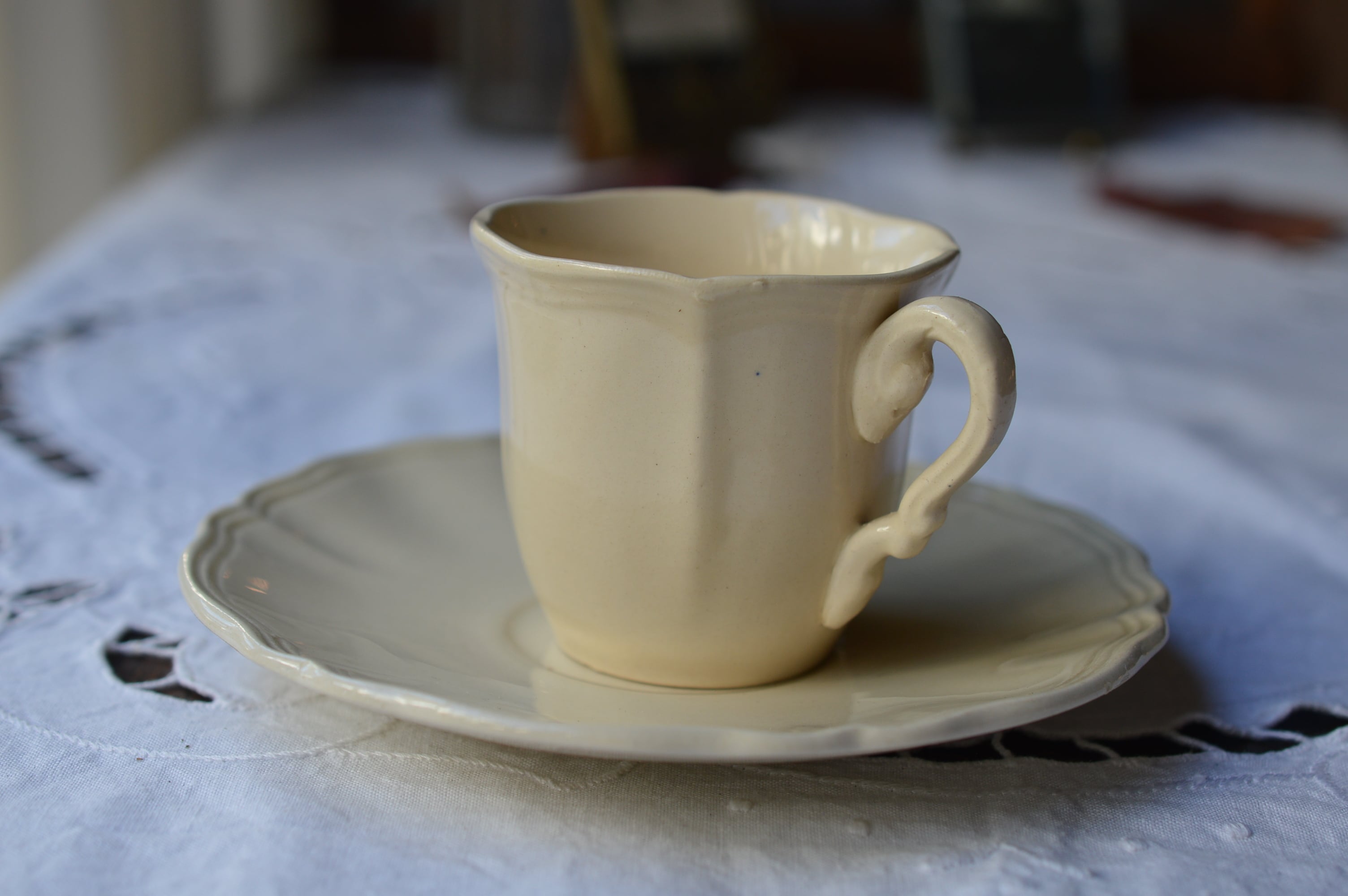 Digoin&Sarreguemines 花リム 象牙色 カップ&ソーサー