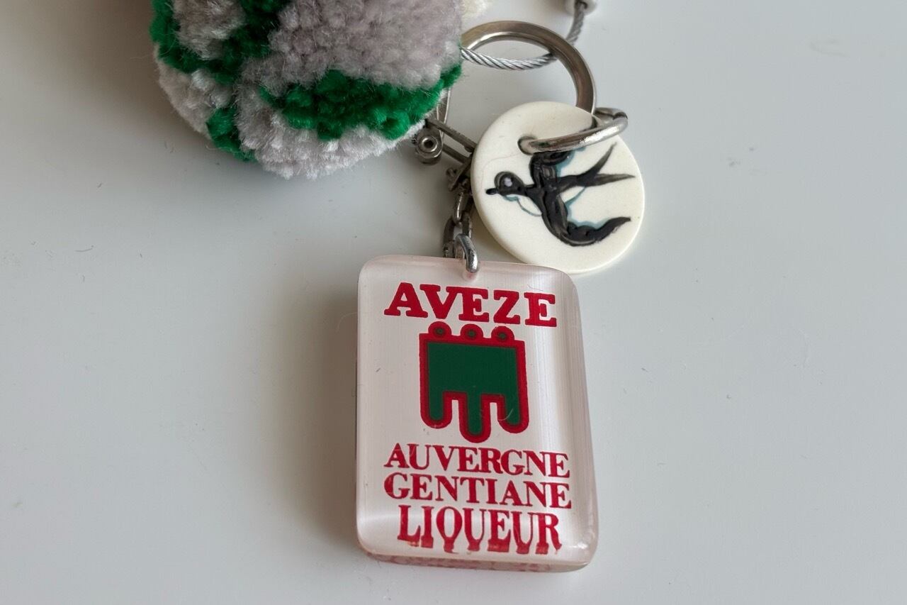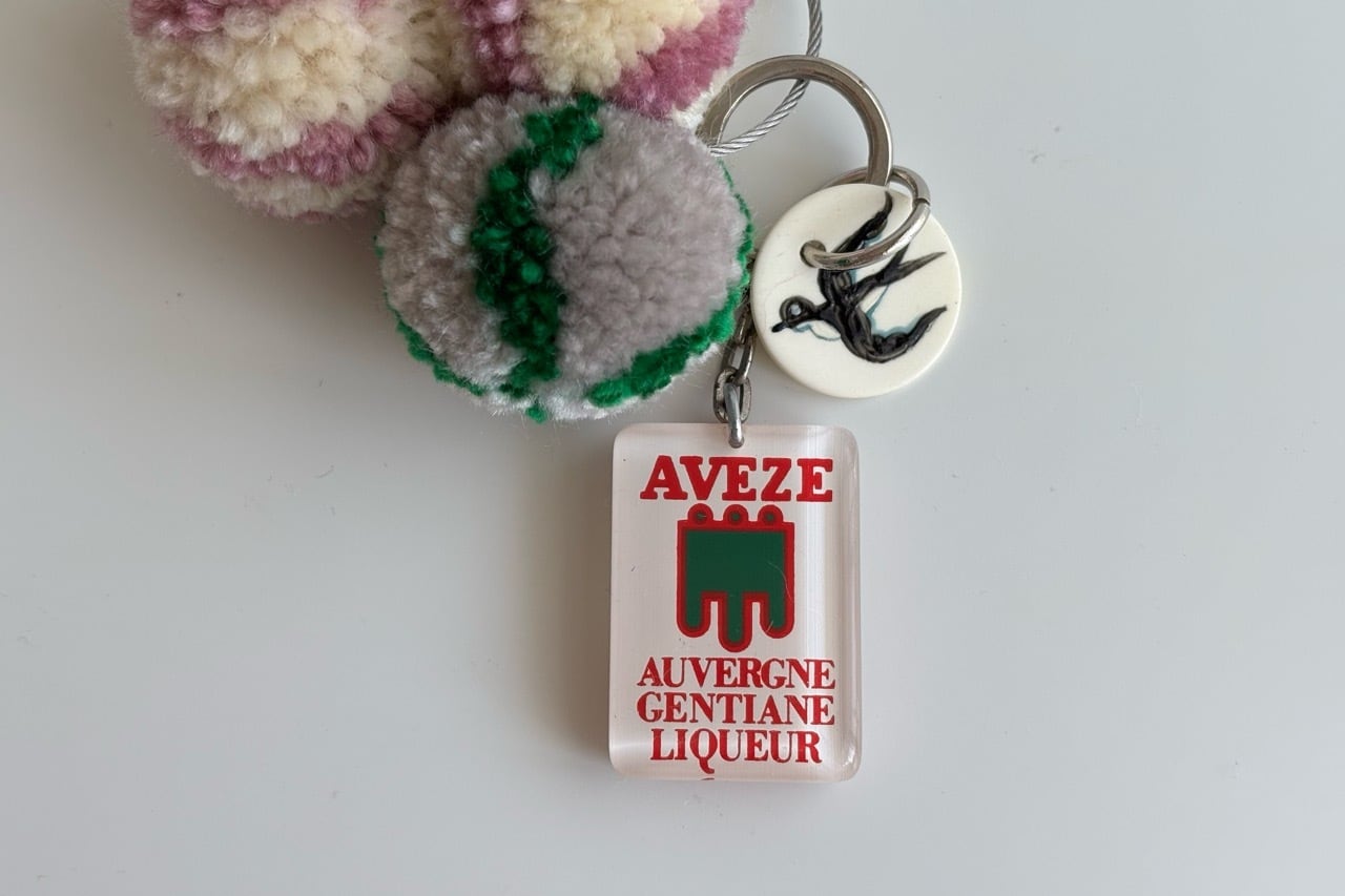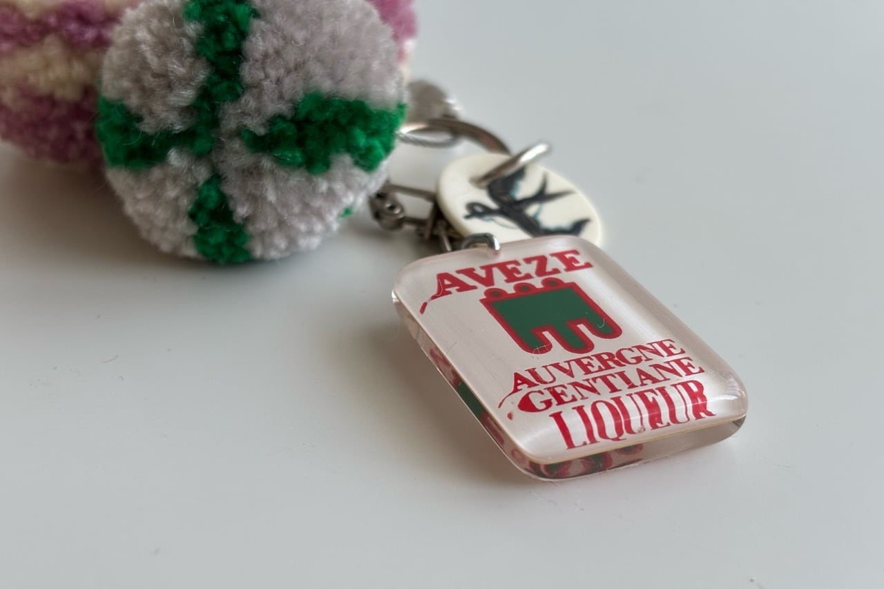 前回ご好評いただいたヴィンテージのキーホルダーを付けたバッグチャームを再制作いたしました。