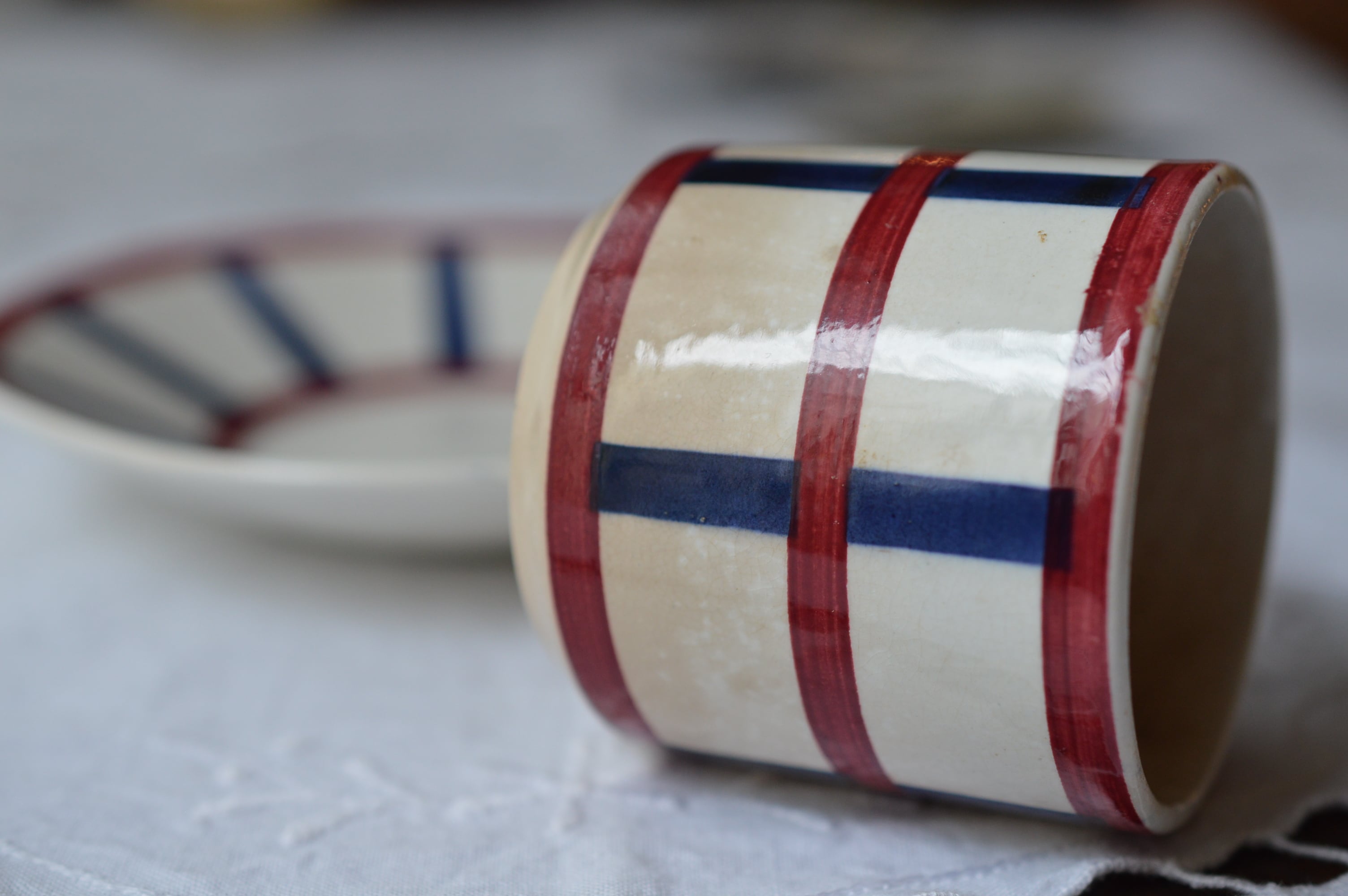 その特徴的な茶と青色の格子模様のデザインは、この地方の伝統工芸として古くからフランスの陶器やテキスタイルなどに取り入れられています。