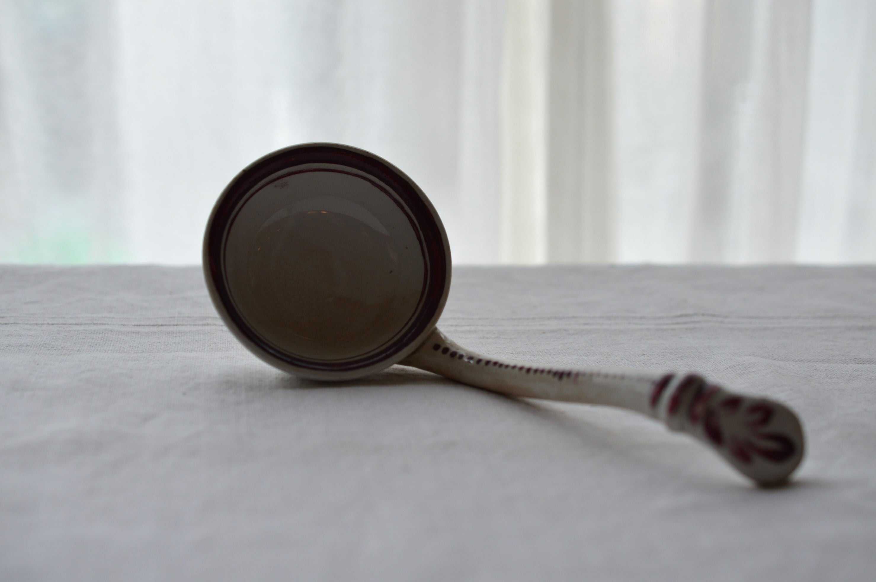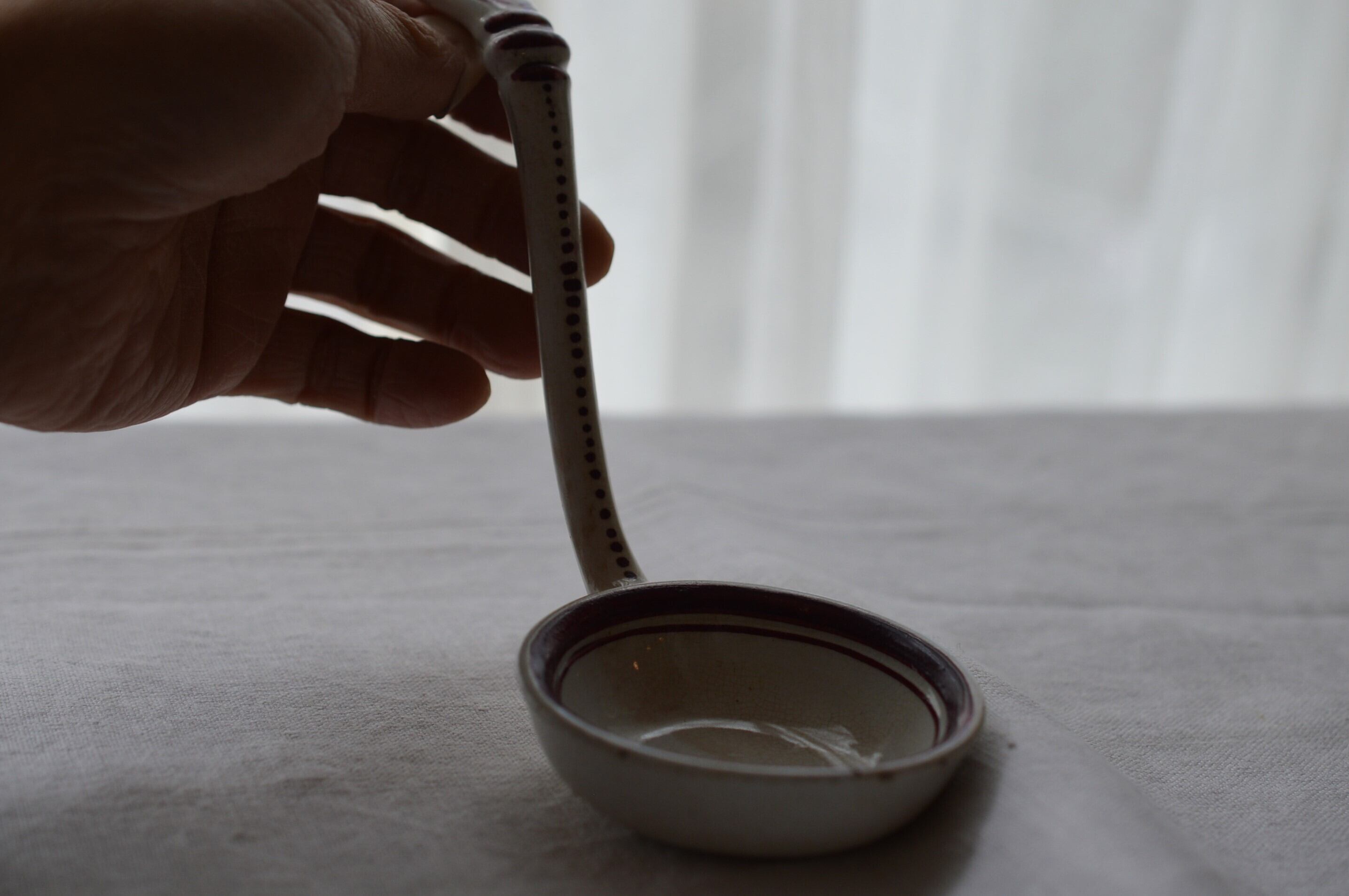 陶器のスープボウルやソース入れなどと共に使われていたレードル。