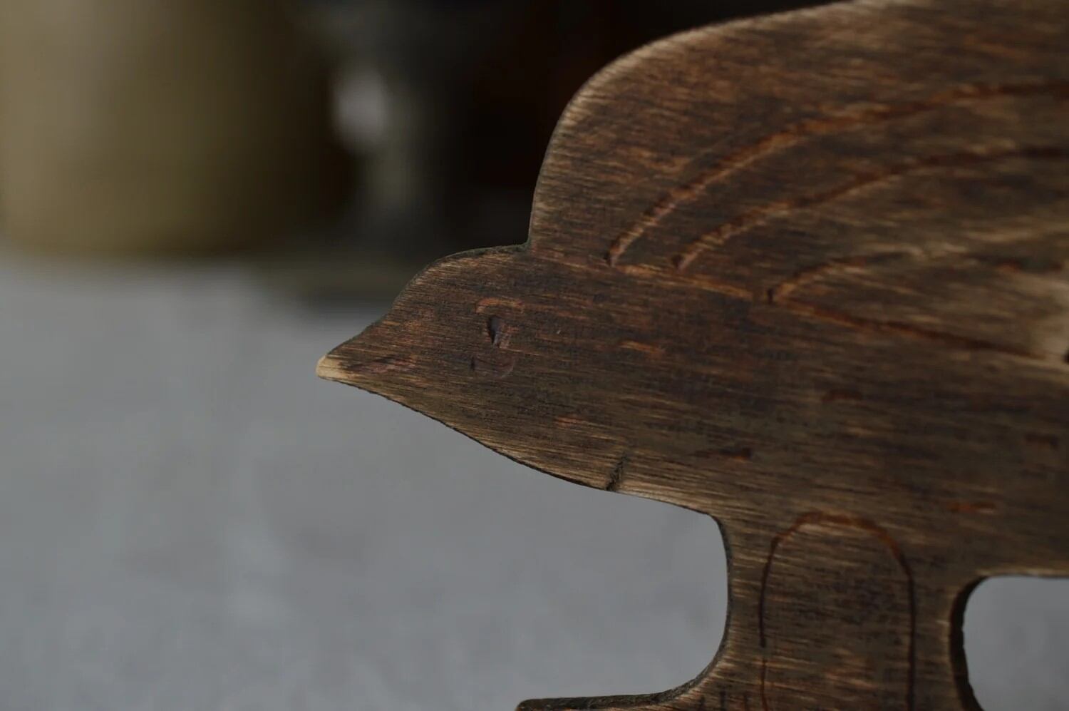 ツバメの型を切り出し、上からツバメの顔や翼の表情を削って、塗装してあります。