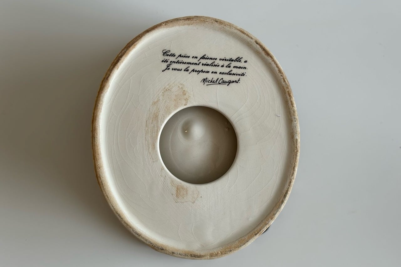 フランスではテリーヌコレクターの間で、その年に誰が最も洗練されたアイテムを持っているかを決める大会まであるそうです。おもしろいですね。ポットの裏面には、Michel Caugant のサインと「ひとつひとつ手作業で作られています」といった文言が入っています。ブルターニュを愛し、町のみんなから愛されたミシェルは、2021年88歳でこの世を去りました。