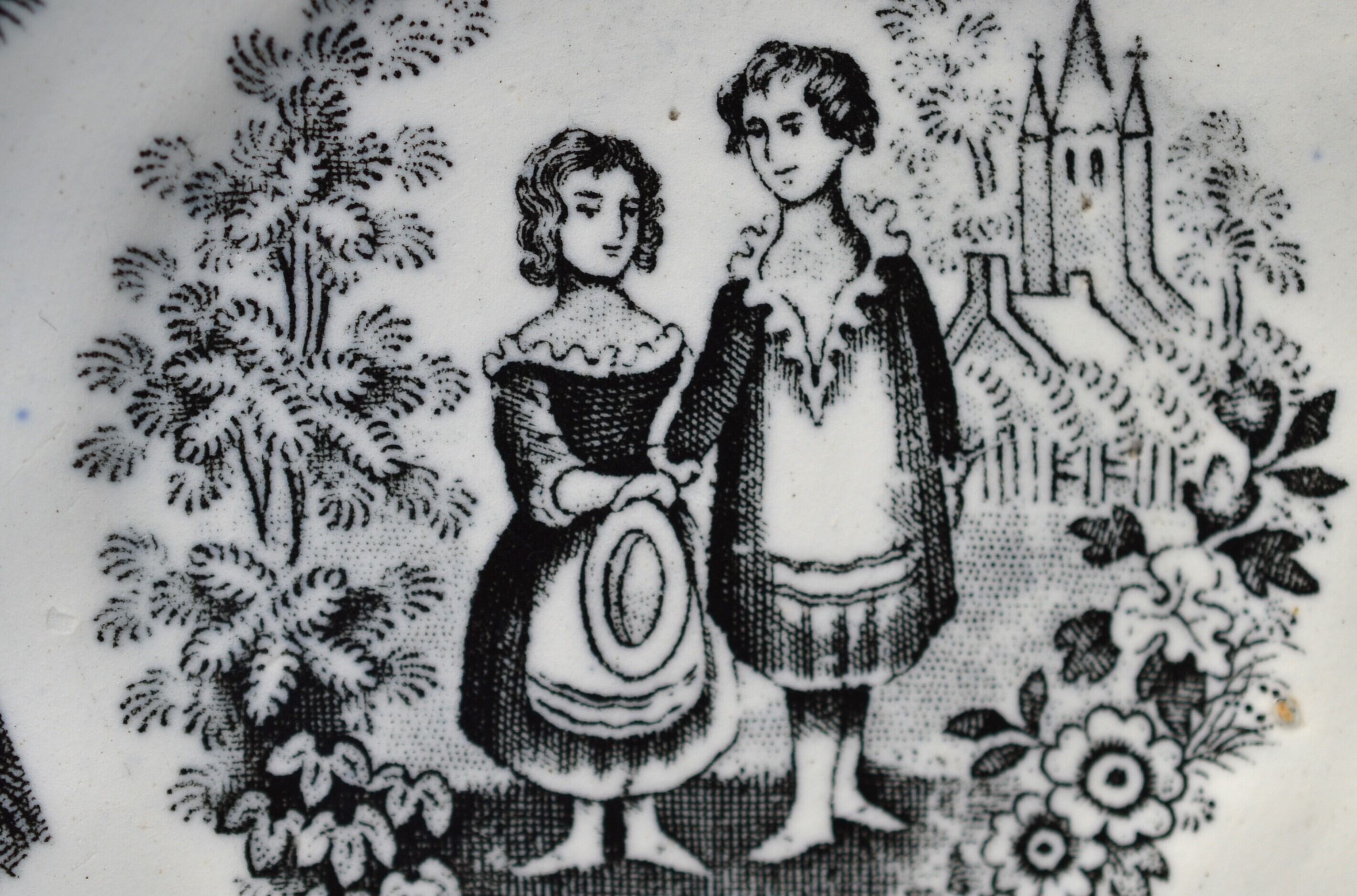 19世紀前後のBOCH製トランスファープレートです。Orphans は「孤児」という意味で、当時はよく絵皿のモチーフに取り入れられていました。