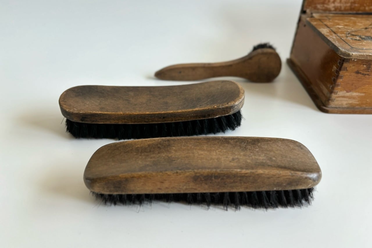 木製ブラシはどれも年季の入ったもので、毛並みは柔らかく今でも現役で使えそうです。