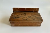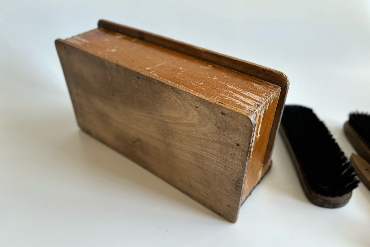 靴磨きボックス/蓋にプリントが施された木製の箱 ot1976