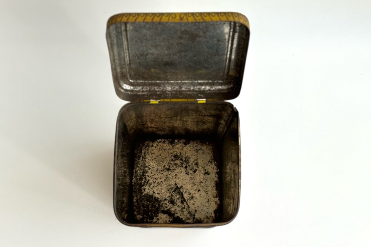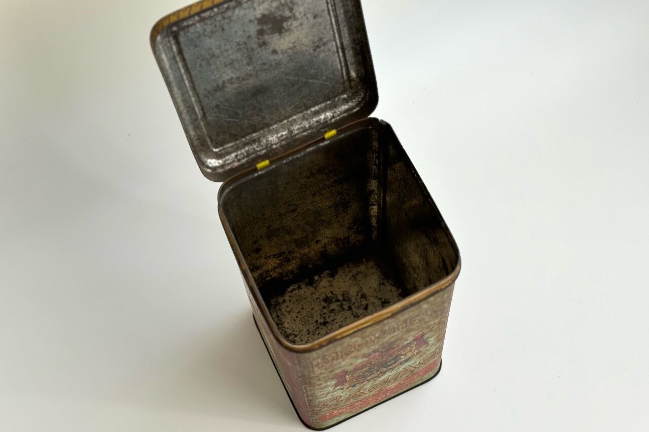 当時のままのデザインがしっかり残っていてオランダらしい格式のあるチャーミングなブリキ缶です。